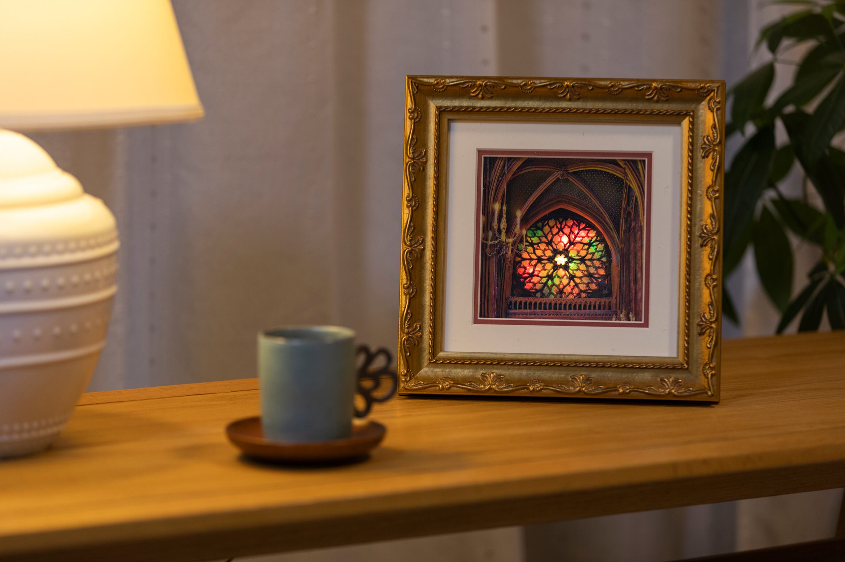 スイッチを切り替えるとステンドグラス部分が7色に変化する